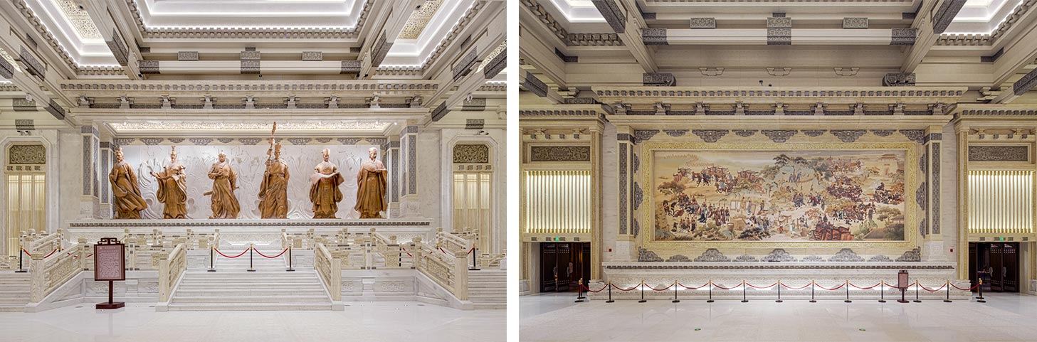 汉中汉文化博览园,位于陕西省汉中市兴汉新区,建筑面积11.88万平方米,是全国首屈一指的单体体量大、装饰标准高的特色文化旅游项目。项目由无锡灵山拈花湾设计研究院、上海禾易设计担纲和室内设计,金螳螂五分公司顾克旺项目团队负责先祖堂、先圣堂、先贤堂、汉乐府和城市展览馆等区域的内装饰施工。