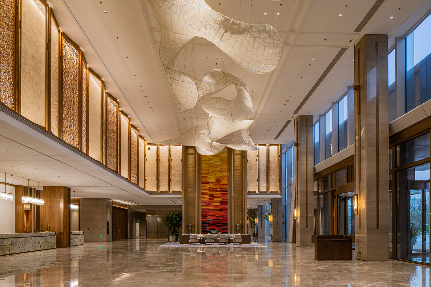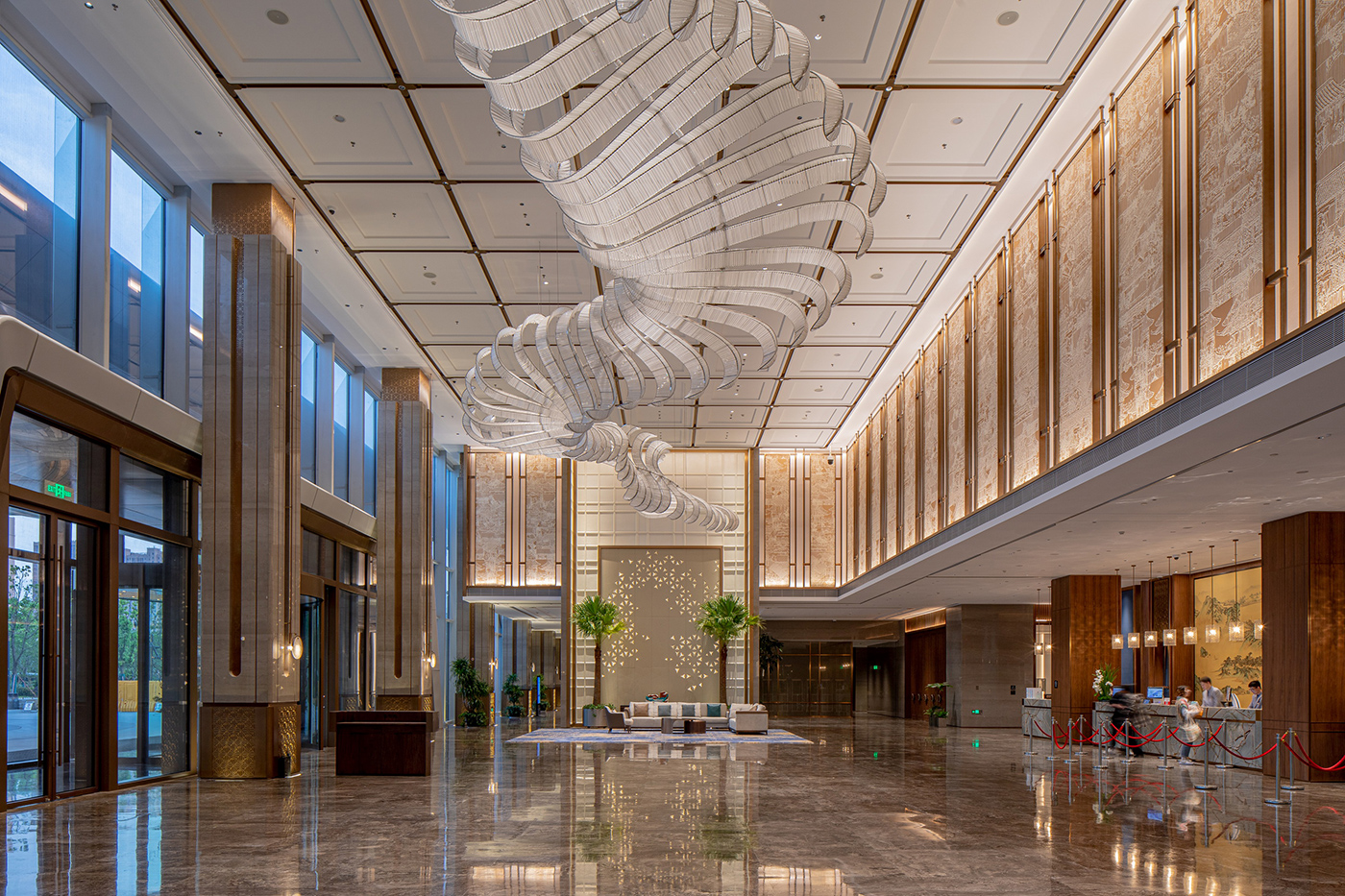 苏州国际会议酒店位于风景秀丽的相城区高铁新城环秀湖边,项目建筑面积30万平方米,其中装修面积20万平方米,客房数量达到1518间;苏州建筑装饰设计研究院负责酒店的方案设计,金螳螂负责酒店精装修施工,朗捷通负责酒店的智慧平台、客房控制系统、会议系统、计算机网络系统等智能化服务。