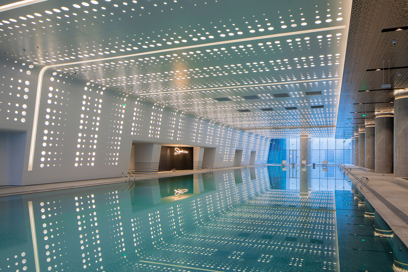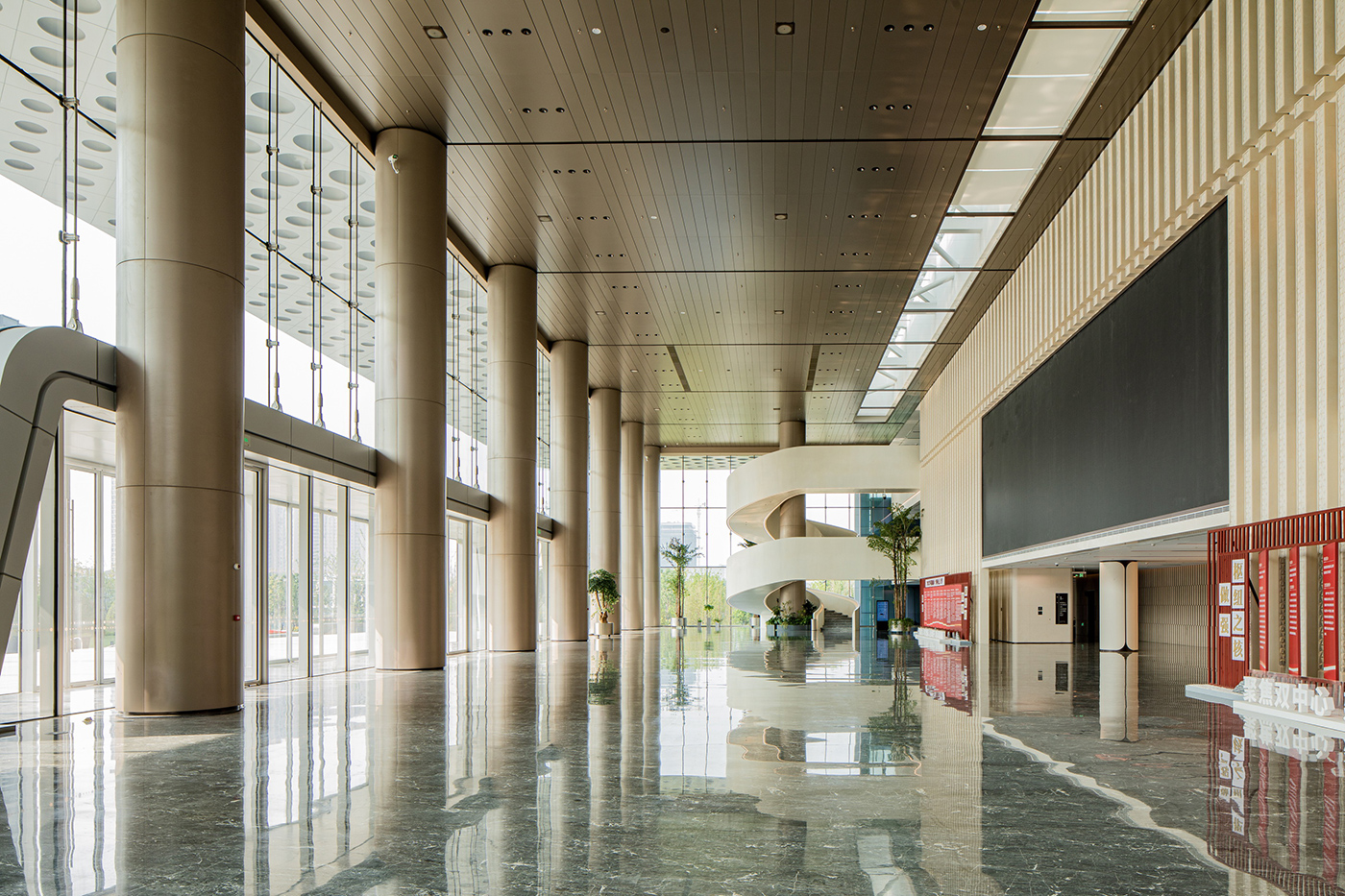 酒店整体建筑俯瞰造型形同汉字“中”,建筑顶部勾勒出高铁形象,完美体现了“以相城梦筑中国梦”的设计理念。