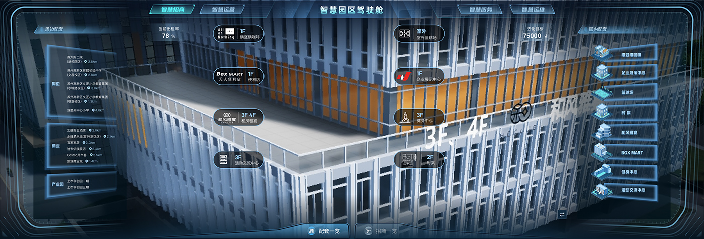 苏高新智慧园区数字平台依托数字孪生、物联网、大数据、人工智能等前沿技术,建设智慧招商、智慧运营、智慧服务、智慧运维四大平台,通过大屏端、网页端、移动端三端一体化管理,实现状态可感知、事件可控制、业务可管理,达到多园区协同管理的目标。