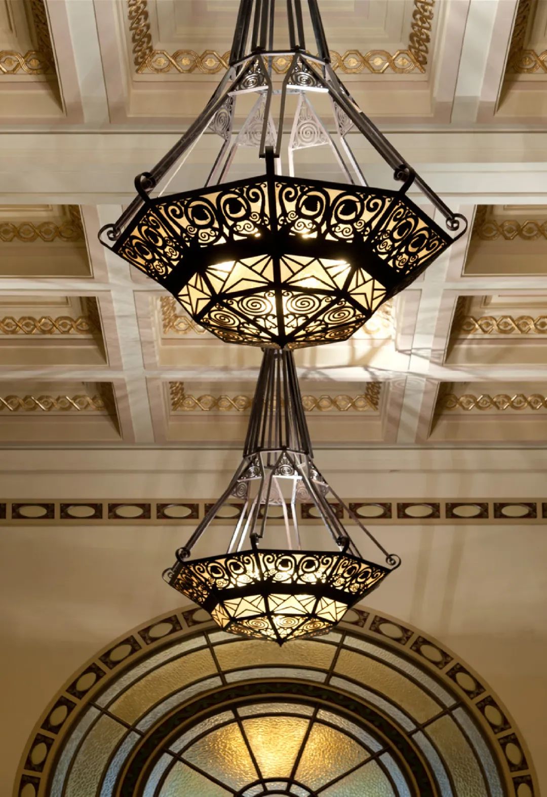 Every element of the interior color scheme at the Peace Hotel has been meticulously selected to accentuate a sense of prestige.