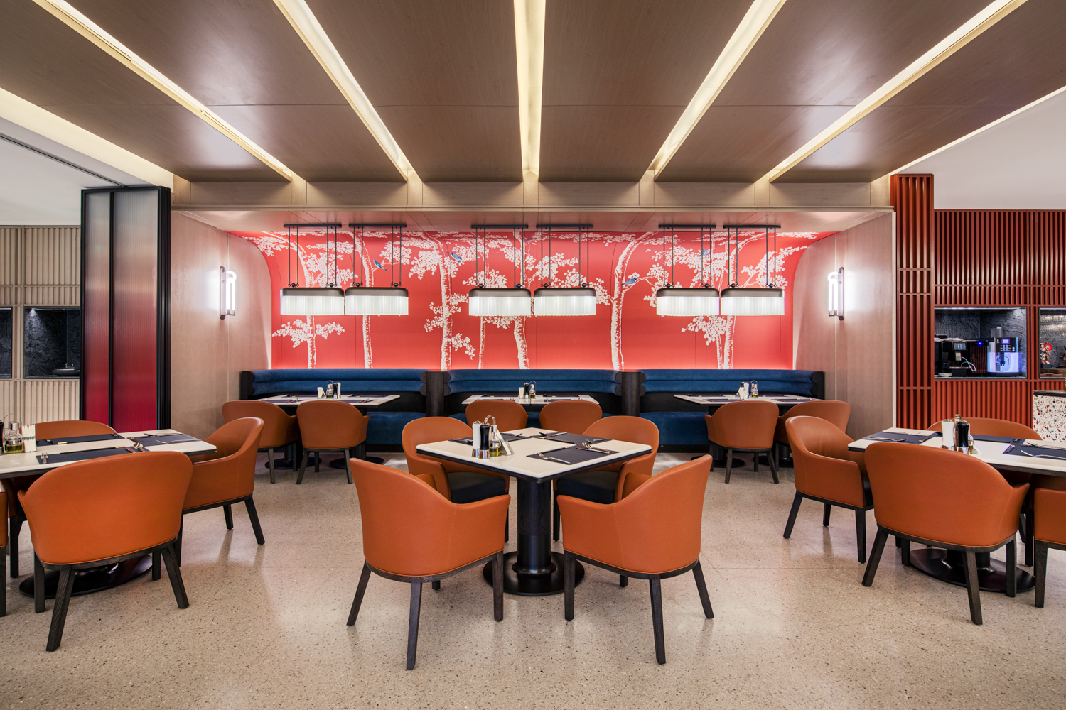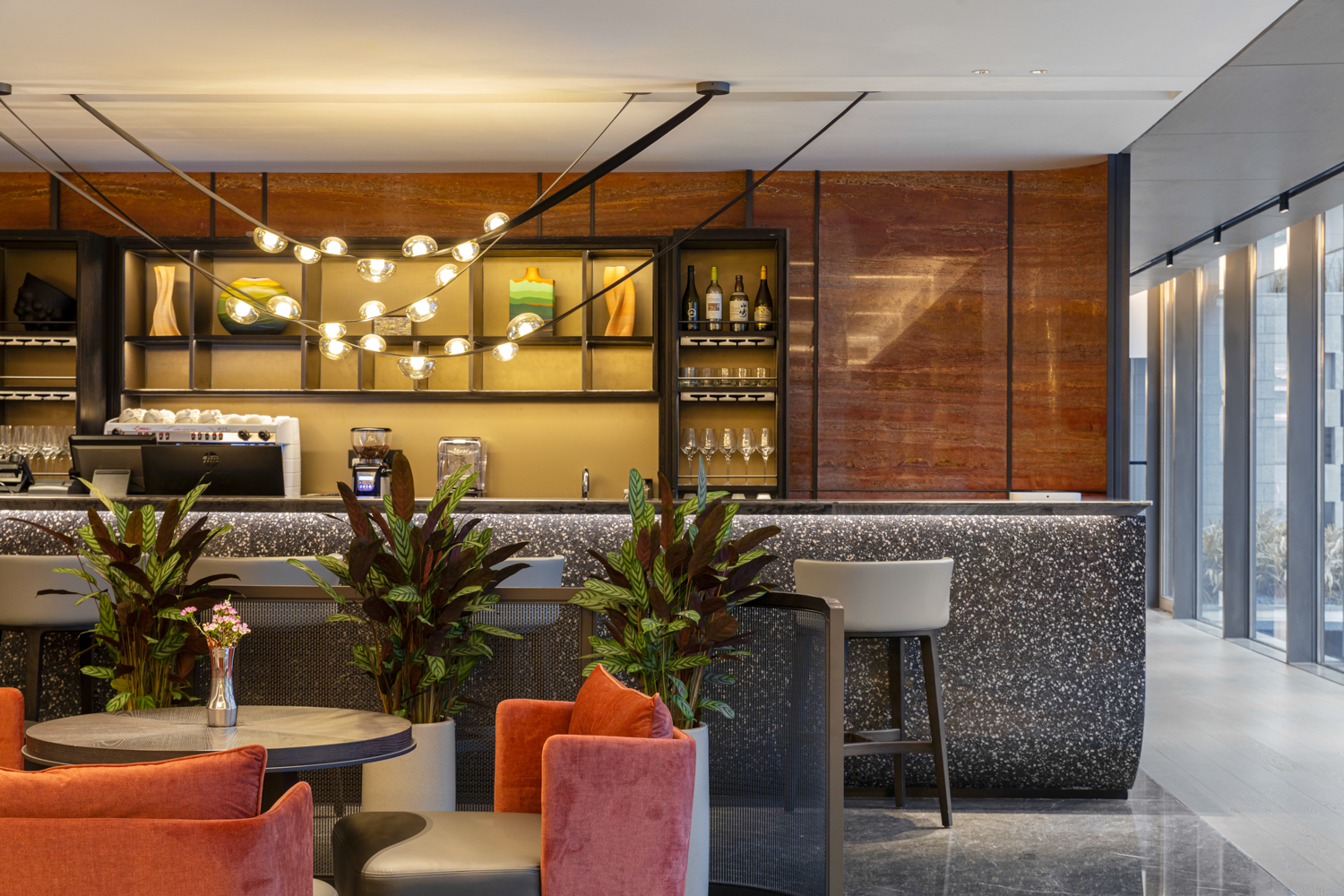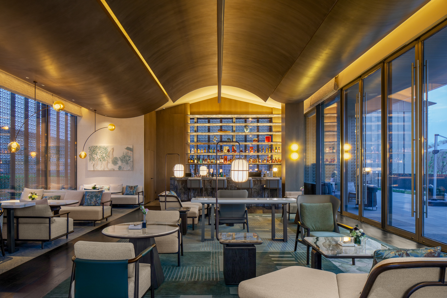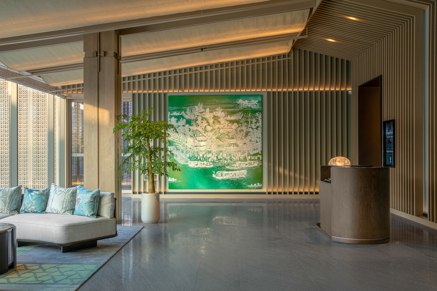 在苏州,在狮山大隐于市的绿色里,悦榕集团旗下悦榕庄和悦椿酒店以复合体形式座落于此,奉献独属于苏州的开场白。悦榕庄的整体风格更加优雅端庄,老钱风十足;年轻化的悦椿酒店更活泼明艳,主打家庭亲子出游。酒店建筑由GOA大象设计,室内设计则是金螳螂旗下HBA打造,金螳螂承接了两座酒店所有客房、包括大堂吧、餐厅、会议空间、泳池等公区室内精装修部分,总装饰面积29288㎡,在粉墙黛瓦这块“画布”上,移步易景、一砖一瓦打造出独具姑苏意蕴的避世之所。