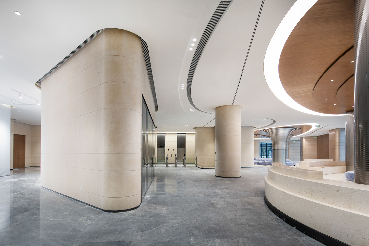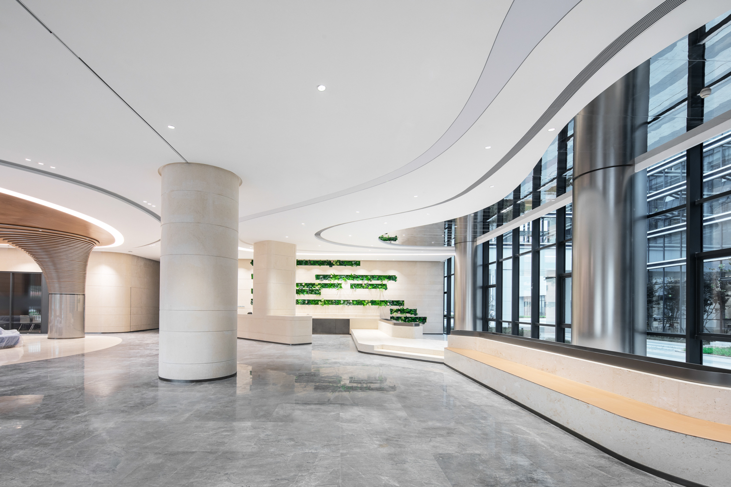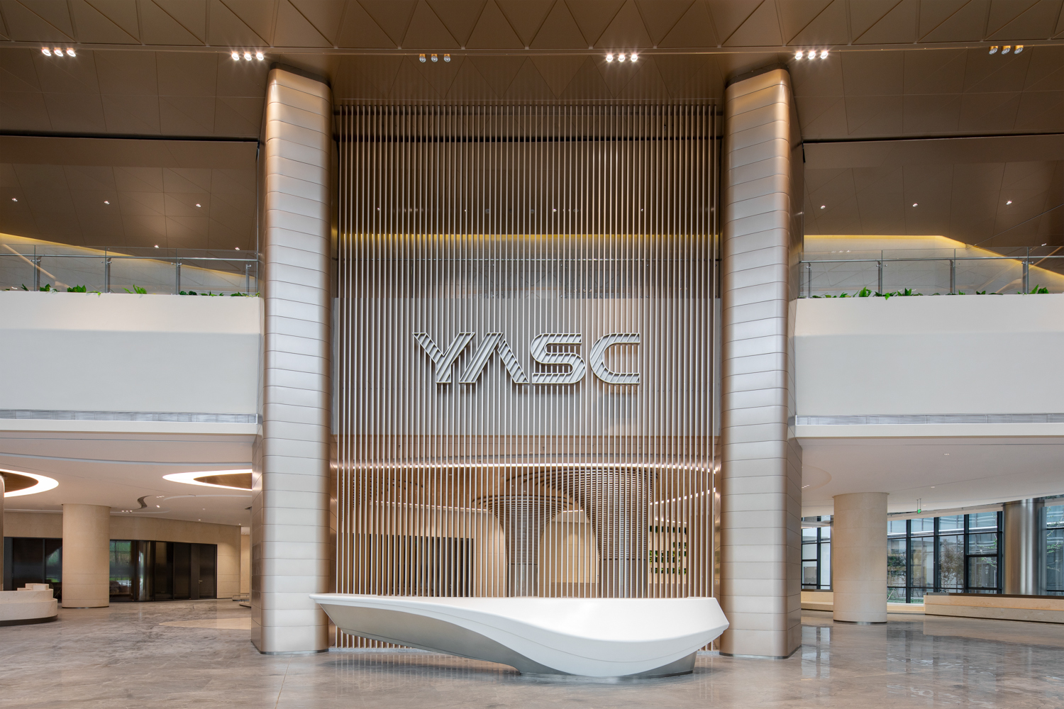 金螳螂承接了长飞先进武汉基地地下两层与地上七层的室内精装修工程,总施工面积达30000m²,涵盖共享办公区、访客大厅、会议空间、餐厅及公共区域等。在这里,设计美学与文化内涵深度融合,成为了科技与人文交织的创新典范。