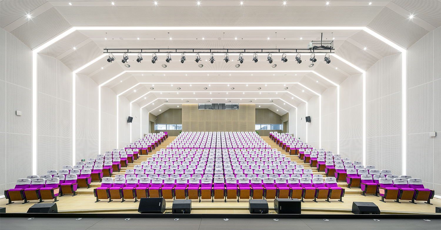 从空中俯瞰,建筑形态与空间组织开放、互动性强且有人文性。建筑布局充分考虑不同学段学生的特点和需求,注重功能复合性与空间灵活性,满足现代化教学、活动、办公等多重需求。