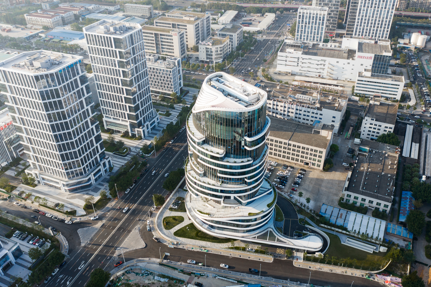 一座造型别具一格的建筑正拔地而起, 仿佛一座绿意葱茏的梦幻“空中花园”