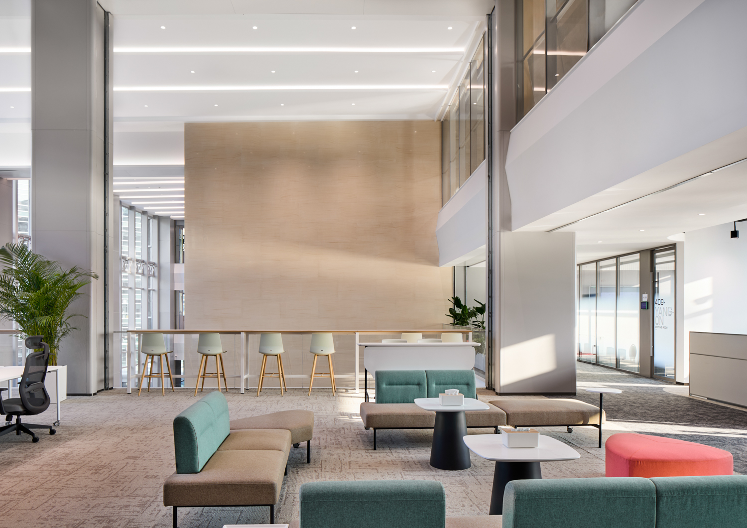 移远全球中心总建筑面积10.23万㎡,金螳螂承接了室内设计及精装修施工。室内空间以谦逊而开放的姿态,将移远品牌视觉语言抽象转译,化为可触摸的、有温度的诗篇。
